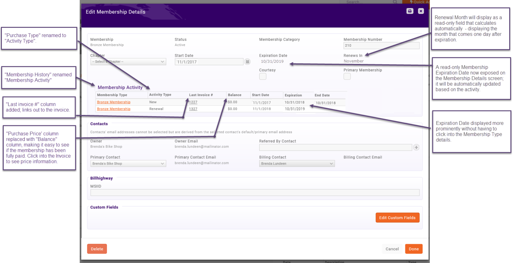- The membership Renewal Month field now ties automatically to your Expiration Date. Learn More.