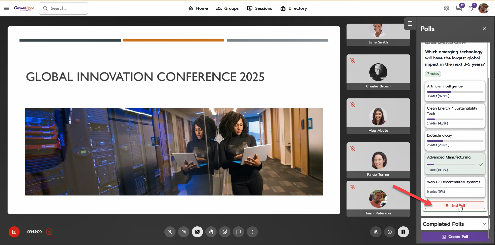 Polls will automatically end when the selected duration expires. Organizers and moderators can also manually end a poll at any time, even before the scheduled duration is complete.