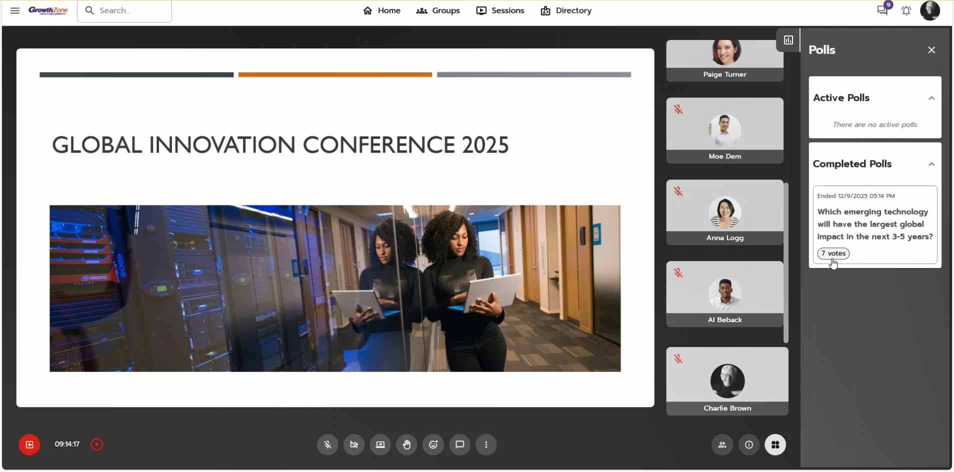 We’re excited to announce Session Polls, an integrated polling feature that lets organizers and moderators launch quick, interactive polls during a live session. Attendees can respond instantly, and hosts can use real-time insights to guide conversations, check audience understanding, and boost participation - all without leaving the session.