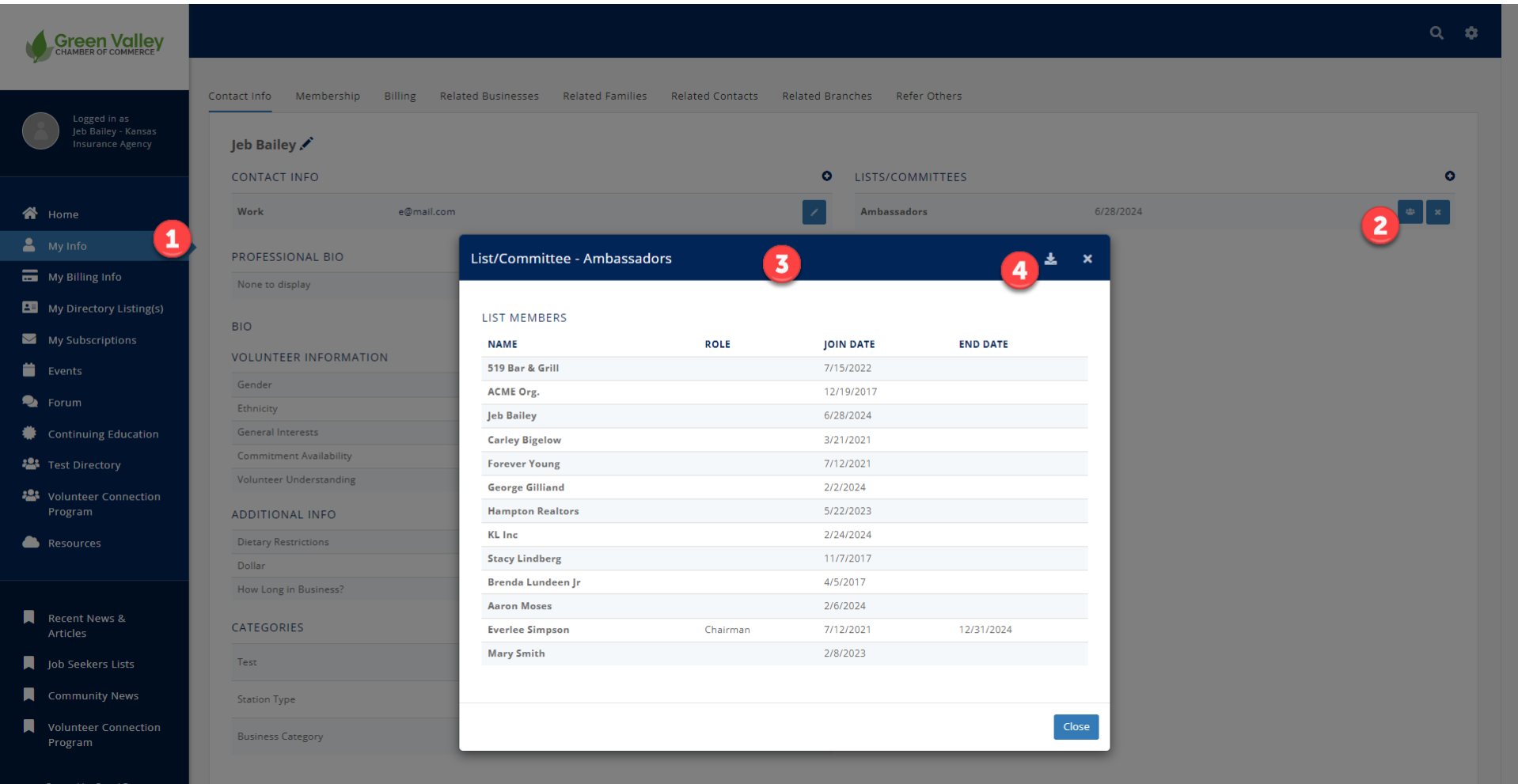 Remember that the Lists/Committees that show in the Info Hub are chosen by the staff. The only people who can see the lists/committee are those that belong to the committee. Once their End Date is reached they are no longer active in the committee and that committee member is no longer displayed in the Info Hub list. See details on how to setup your Lists/Committees to show them in the Info Hub. See KB article.